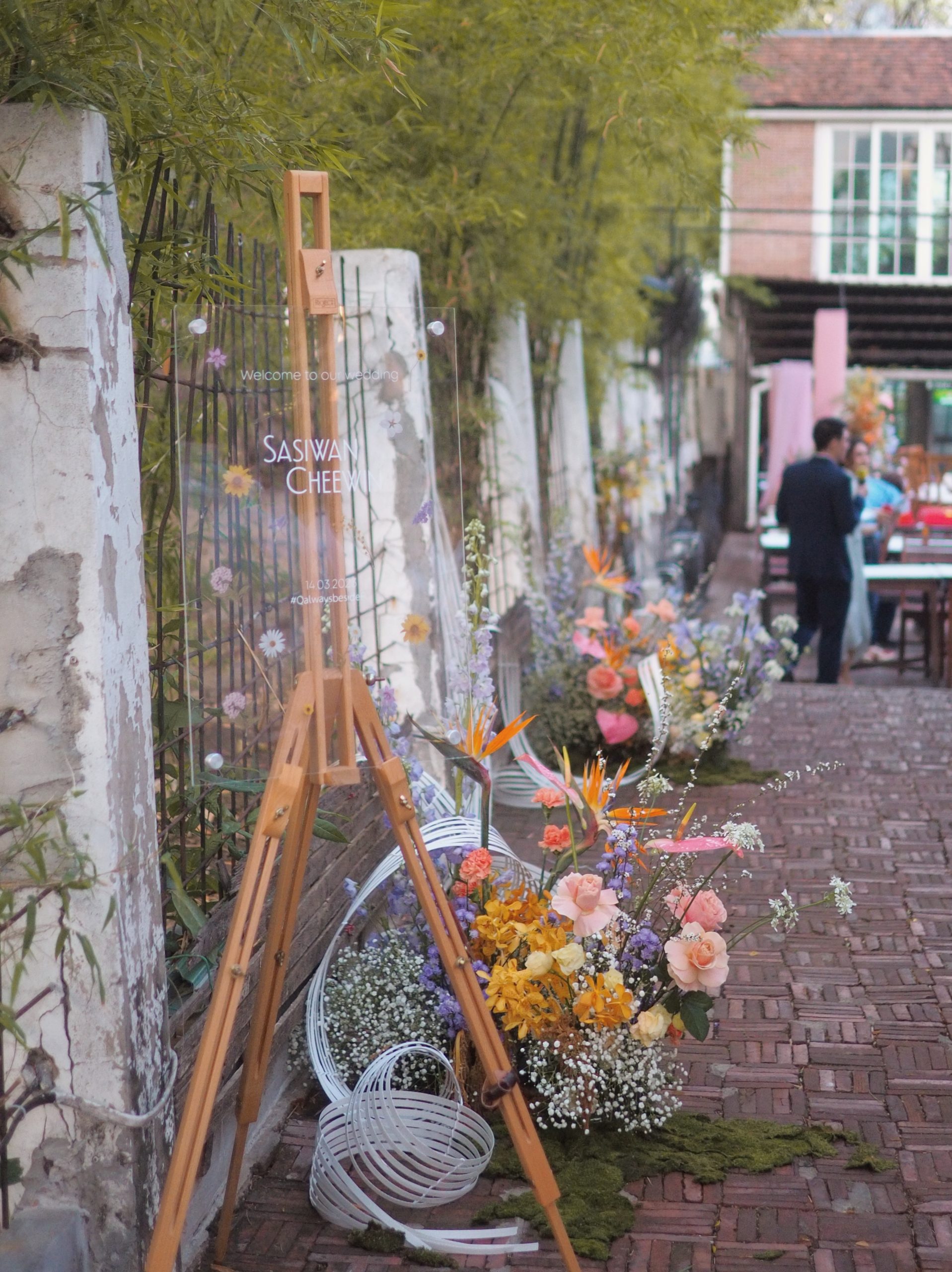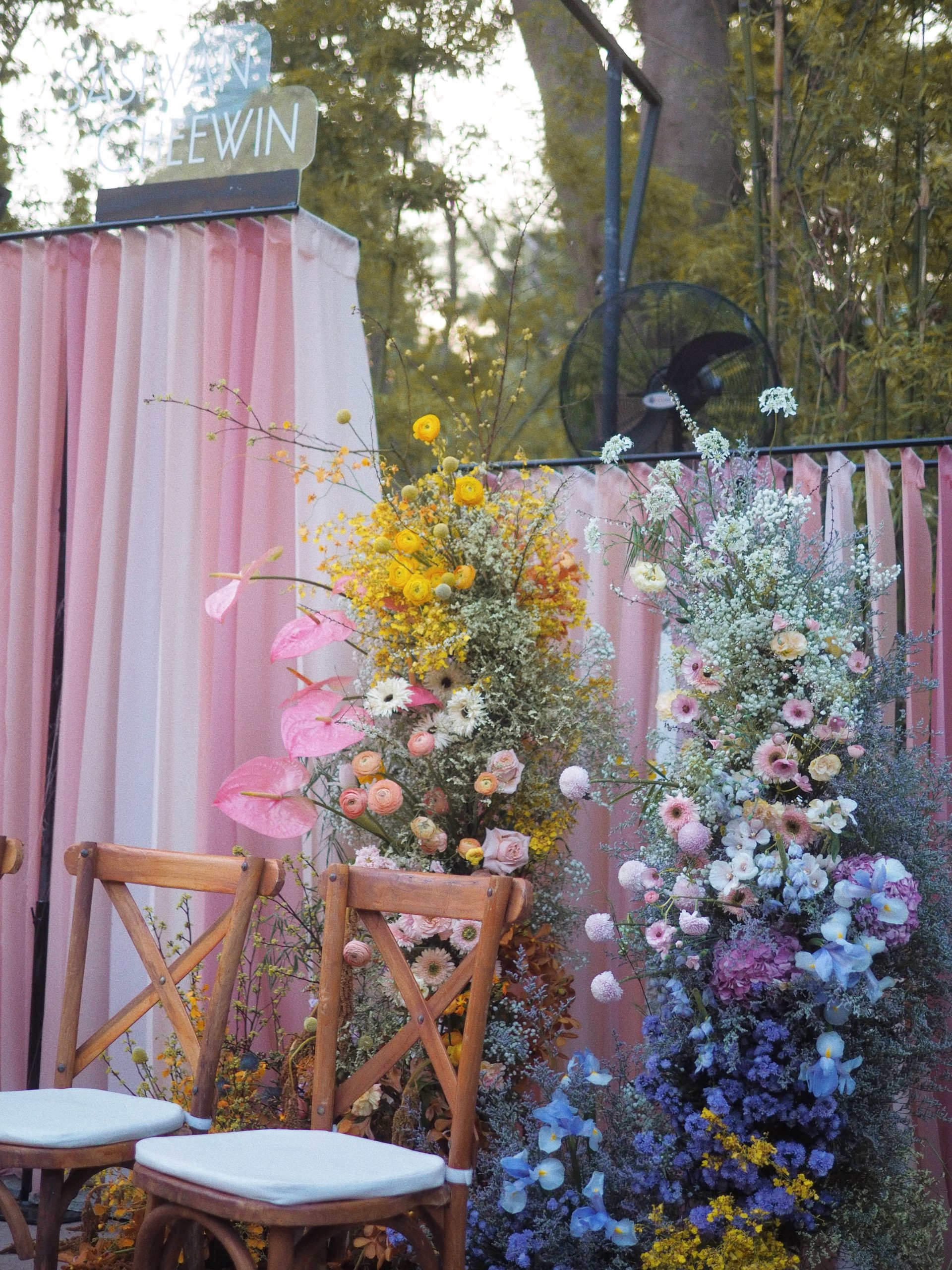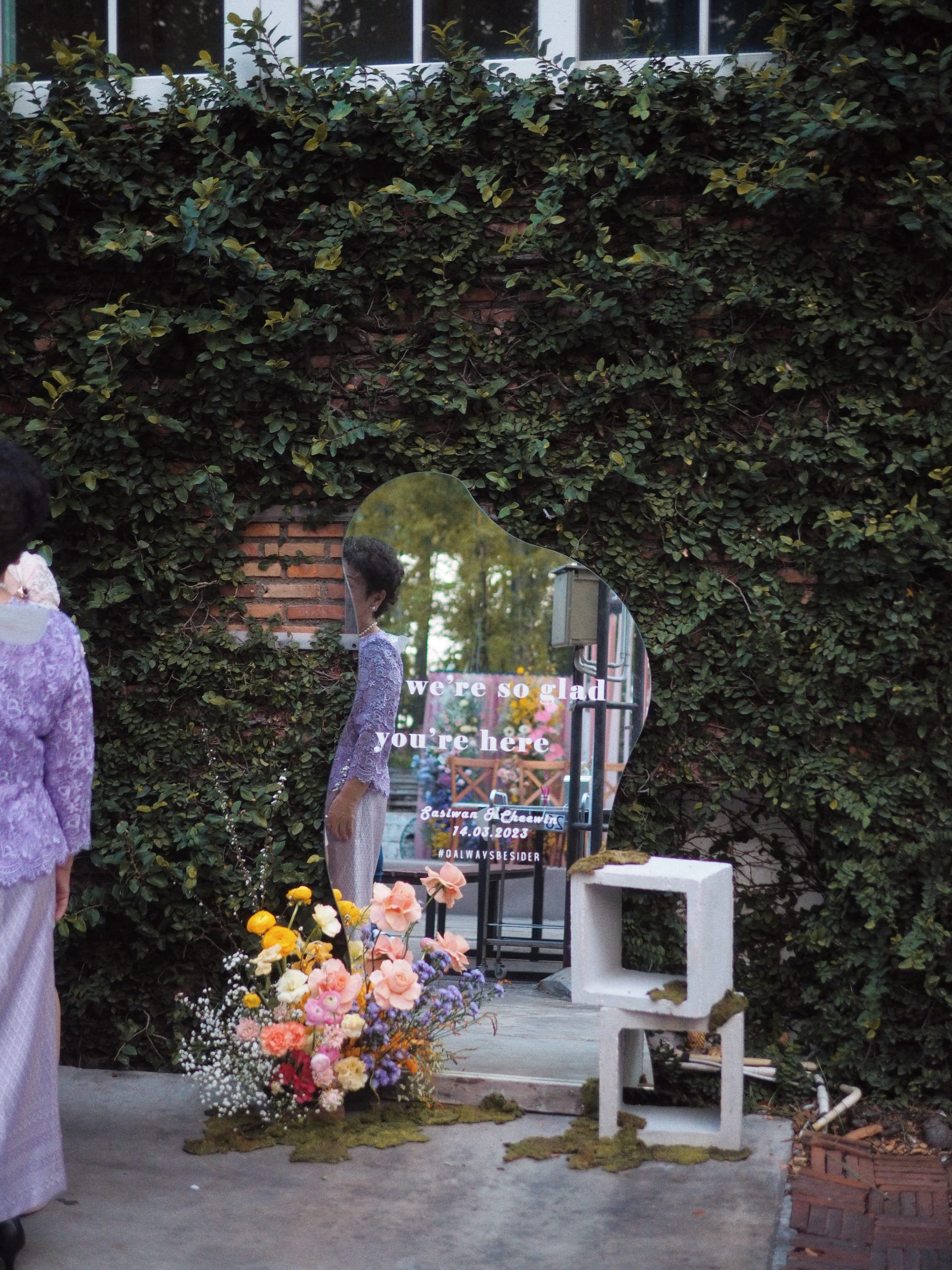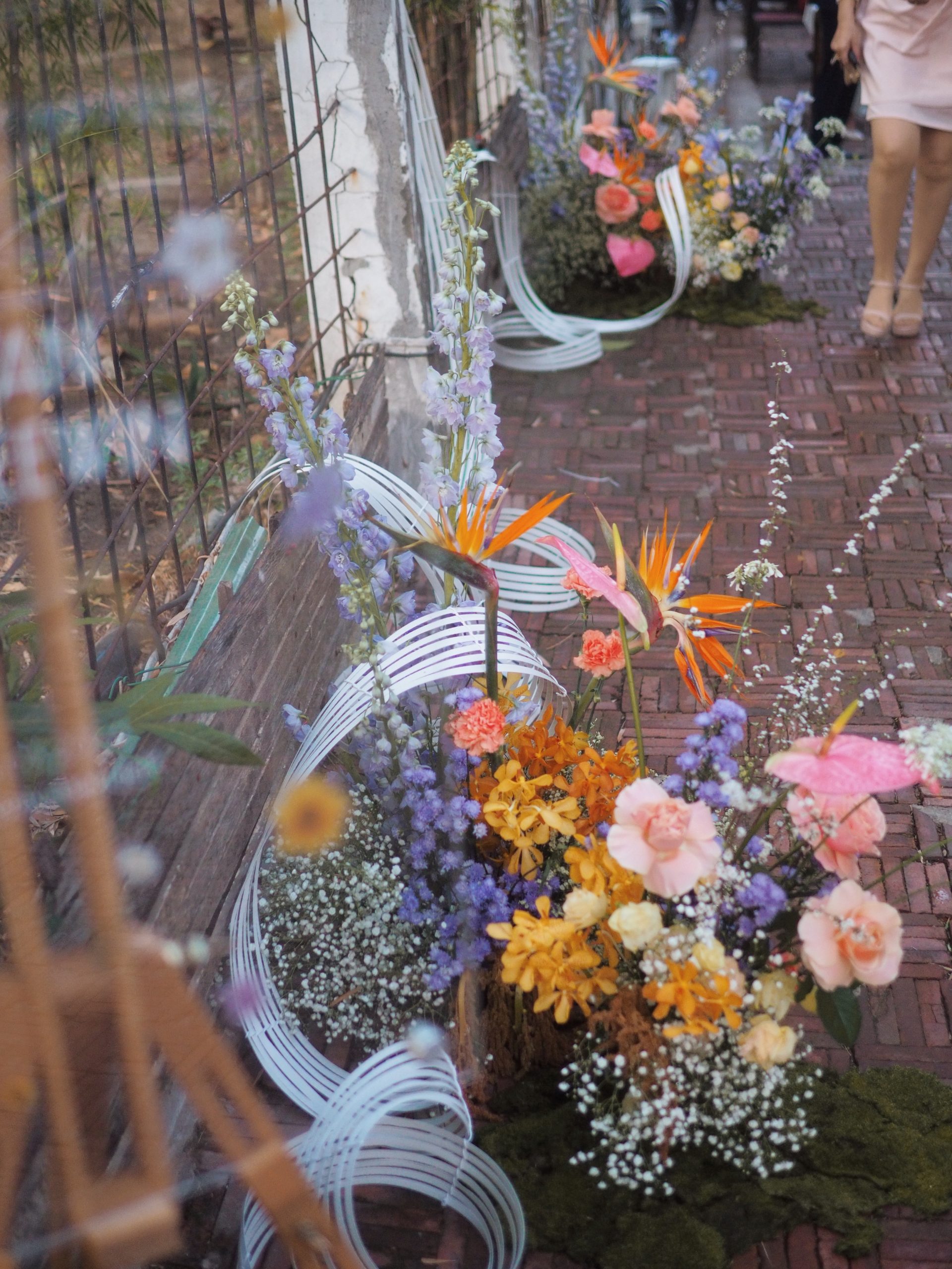 Many of us were taking photos around the setup, it felt lively and memorable. At one point, I remember thinking the couple made the right decision to bring the Flos Cotidie team to Bangkok. There are many decorators locally, but what they created felt different, it wasn't just about using colors, but how they brought everything together in a very natural way.
