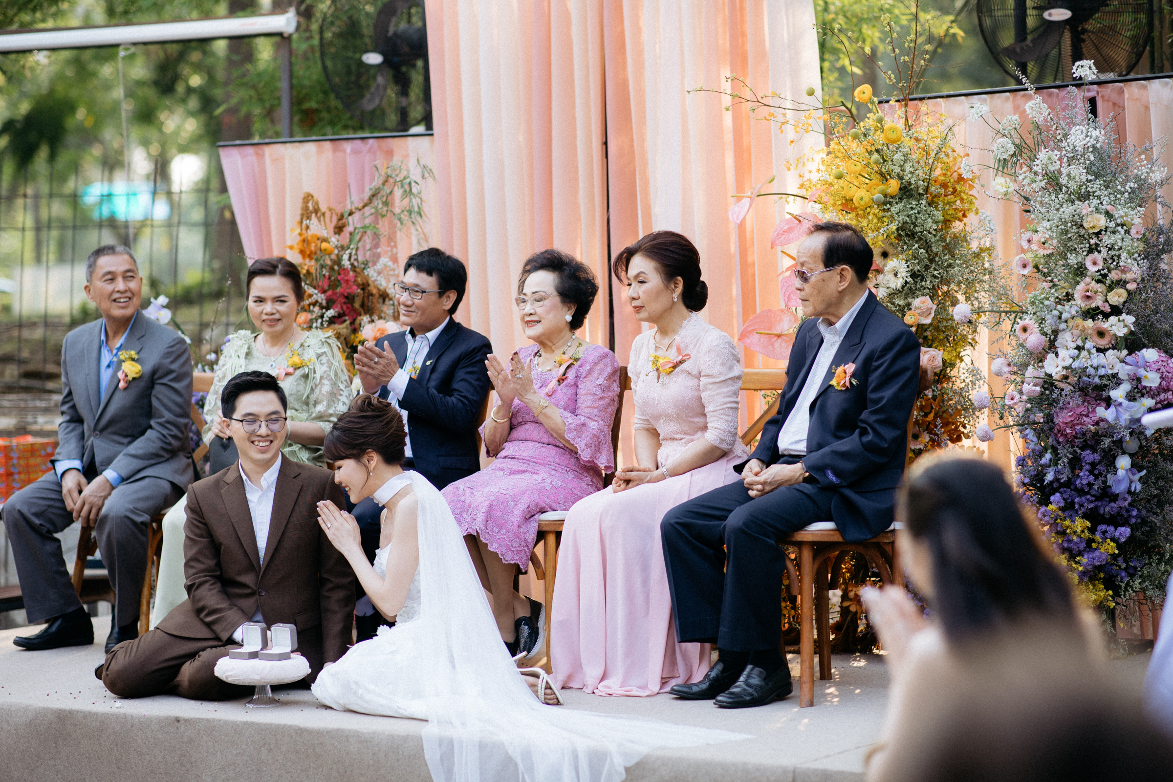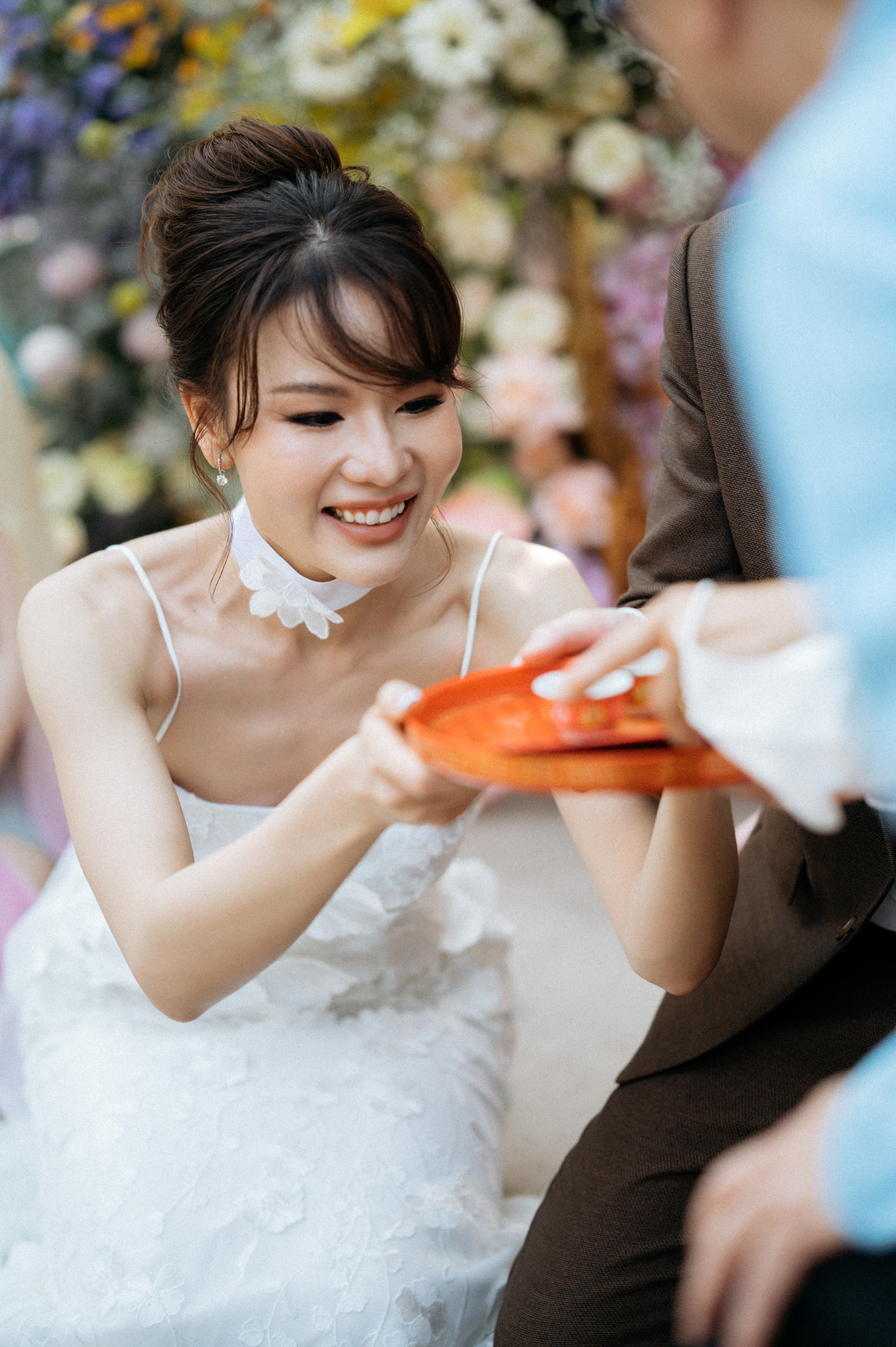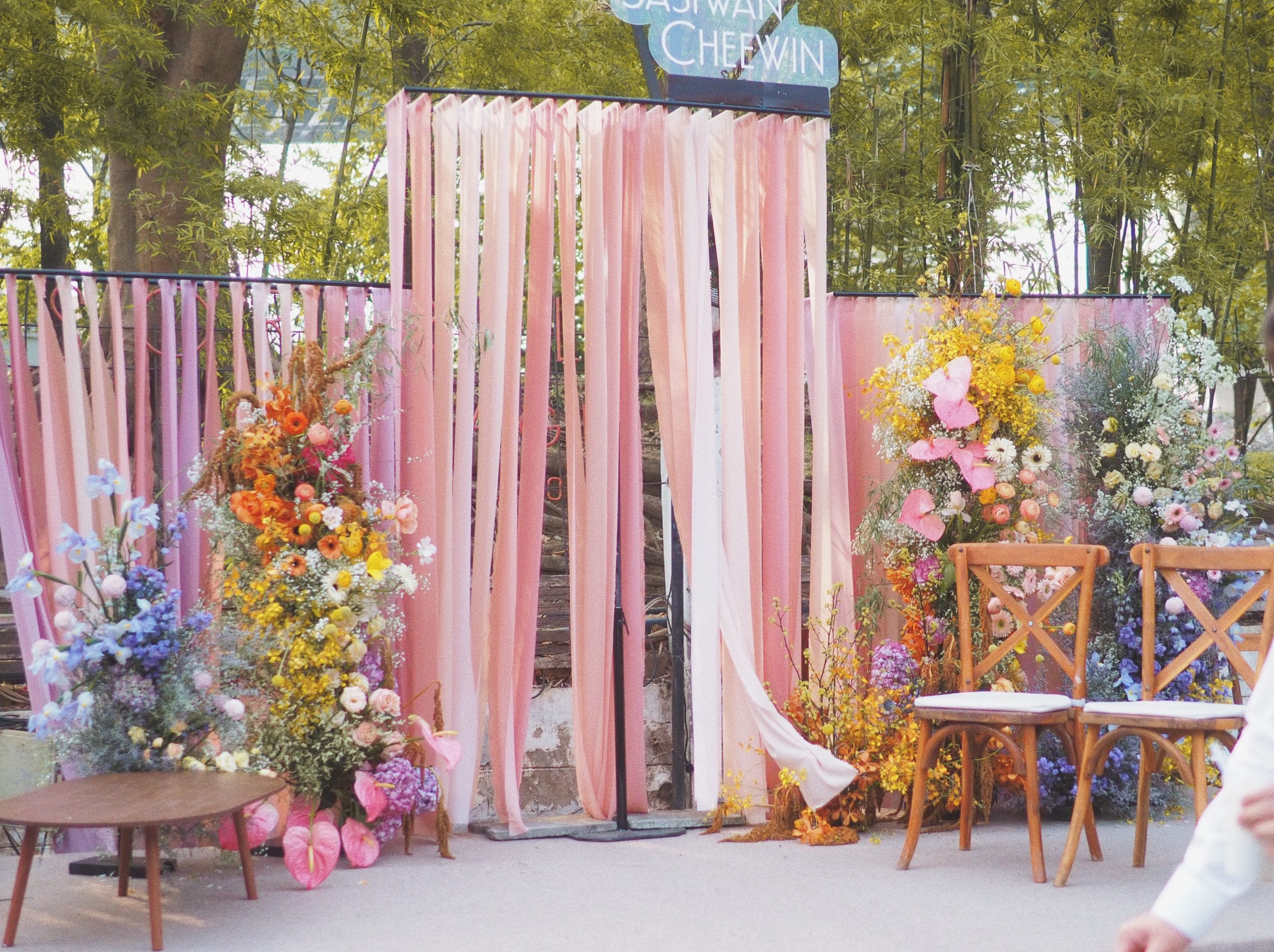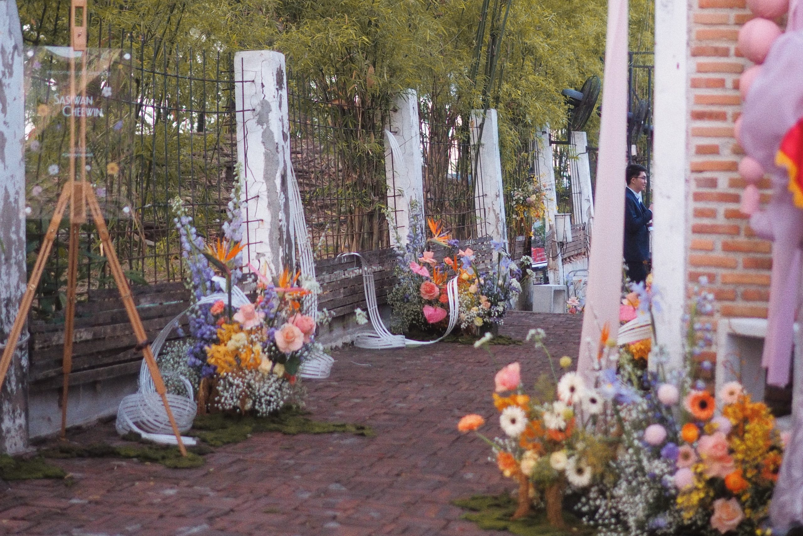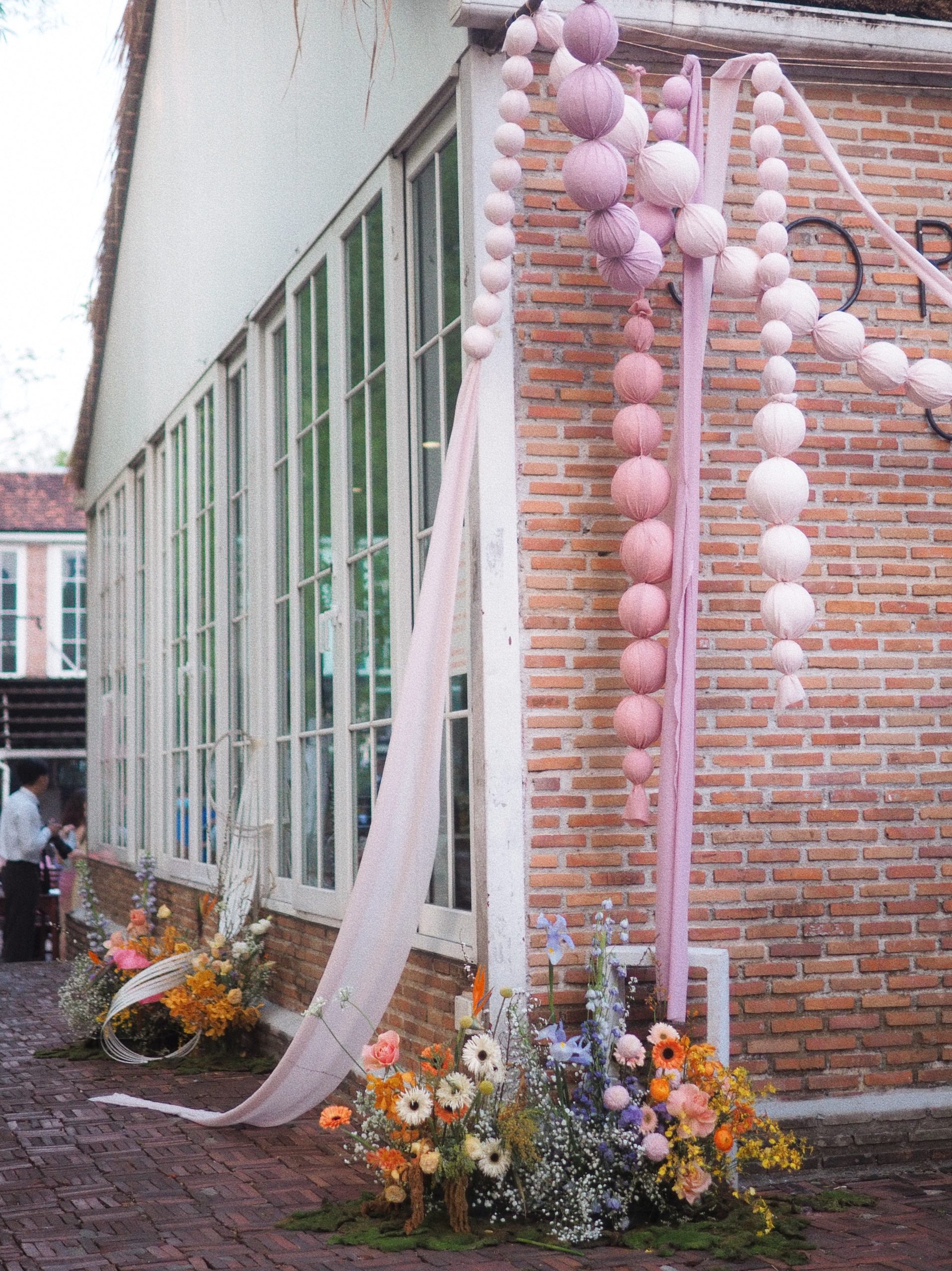 Many of us were taking photos around the setup, it felt lively and memorable. At one point, I remember thinking the couple made the right decision to bring the Flos Cotidie team to Bangkok. There are many decorators locally, but what they created felt different, it wasn't just about using colors, but how they brought everything together in a very natural way.