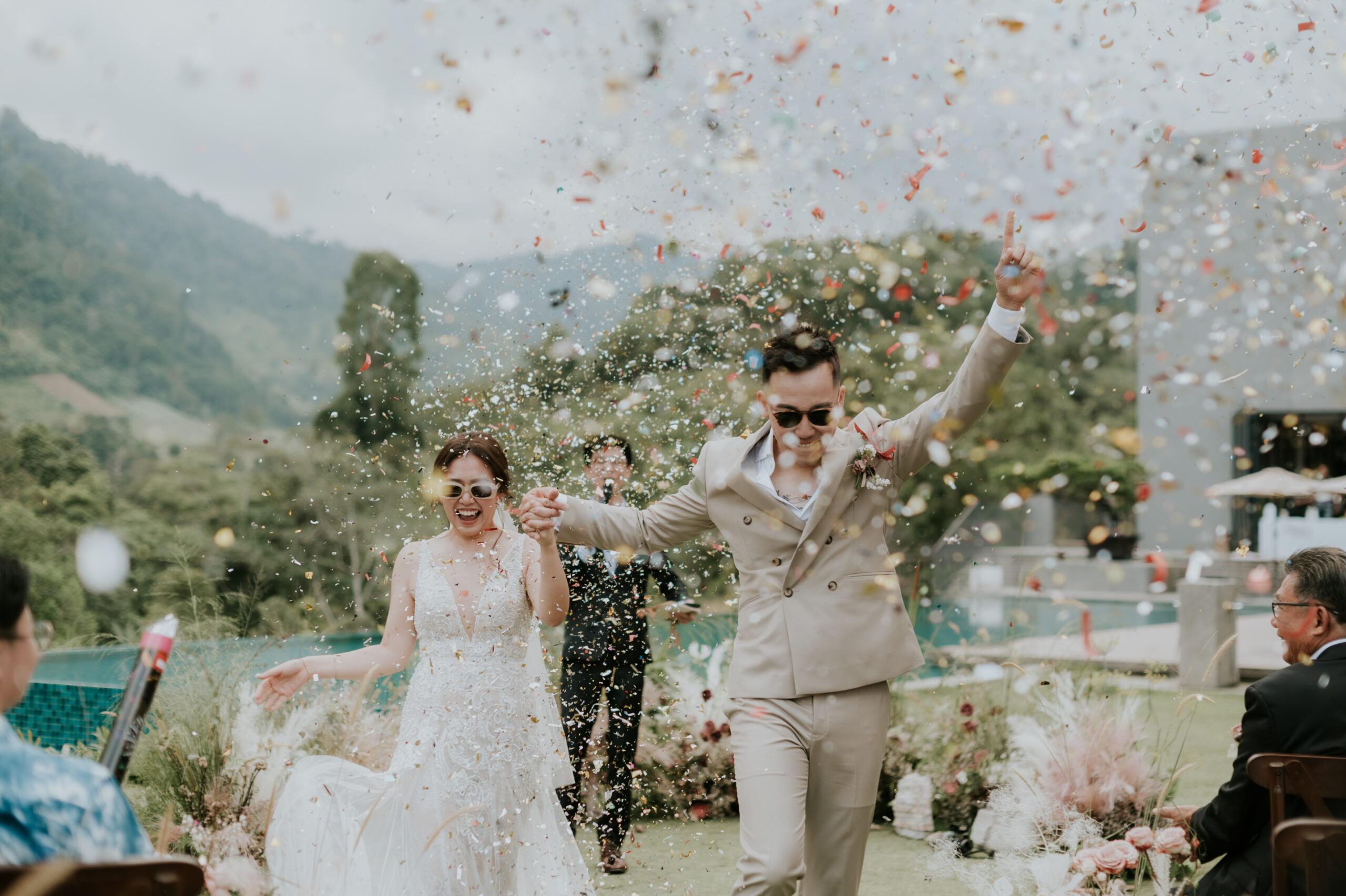 "The suspended floral chandeliers over our reception tables were absolutely breathtaking. Flos Cotidie transformed a simple garden into an elegant, airy wonderland. The theme felt so fresh and modern, yet incredibly romantic. Our friends said it was the most beautiful wedding they've ever attended."